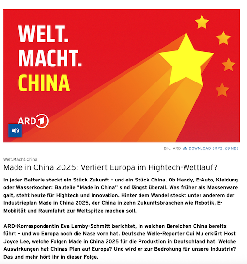 Den Podcast „Made in China 2025: Verliert Europa im Hightech-Wettlauf?“ können Sie hier auch direkt als Audio-Datei herunterladen.